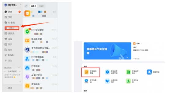 报备与提交:学生在规定时间内通过钉钉学工线上平台提交外出报备申请。