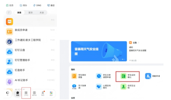 按时返校:学生应按报备的返校时间返校,返校后第一时间进入钉钉系统“返校确认”进行确认签字。