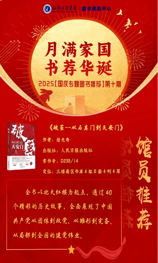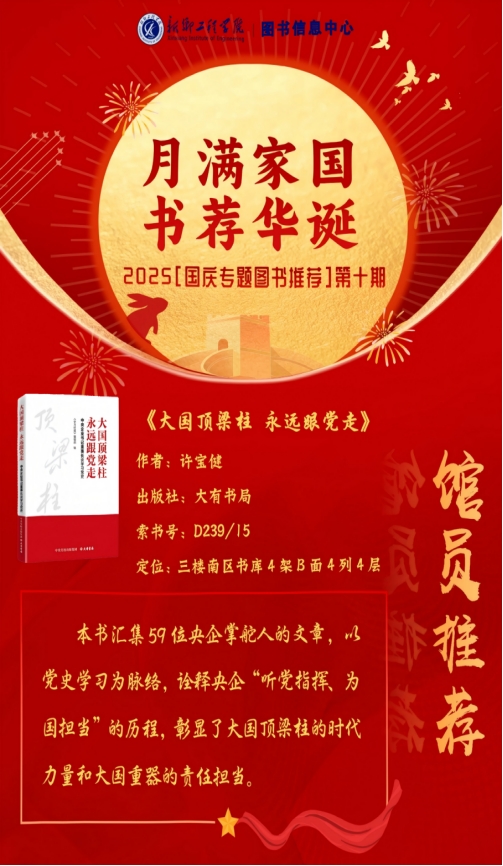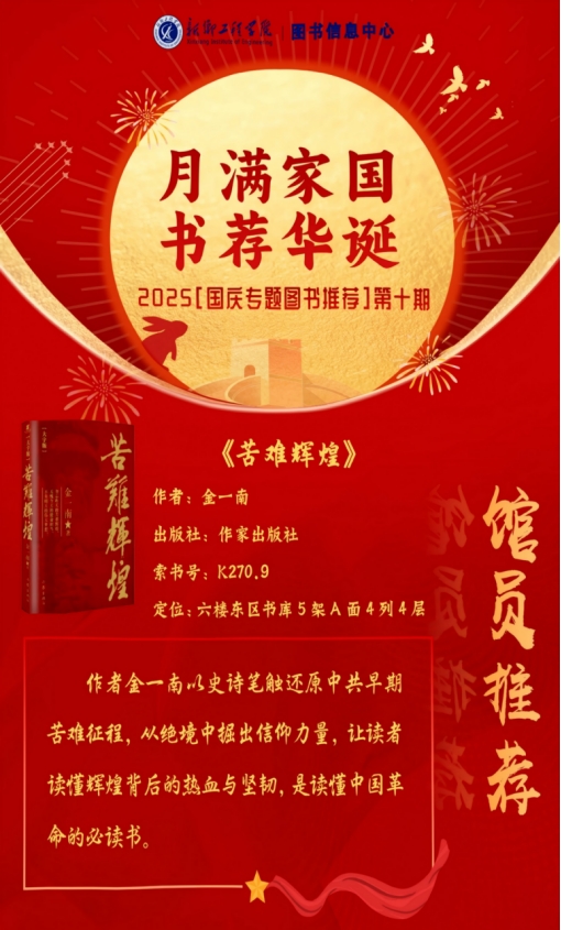 当桂香漫过街头,月色铺满窗棂,我们在中秋的圆融里触摸家的温度;当红旗猎猎迎风,华诞钟声敲响,我们在时代的坐标中感知国的壮阔。值此双节之际,特推出“月满家国,书荐华诞”国庆专题书单。这里有勾勒百年党史的纪实著作,让你在字里行间读懂信仰的力量;有记录科技突破的科普典籍,带你见证大国重器背后的奋斗征程;亦有承载人文温度的历史作品,在细腻笔触中感受历史长河的温情。愿读者们在书架间邂逅家国故事,以阅读丈量时代厚度,让青春与家国同频共振。