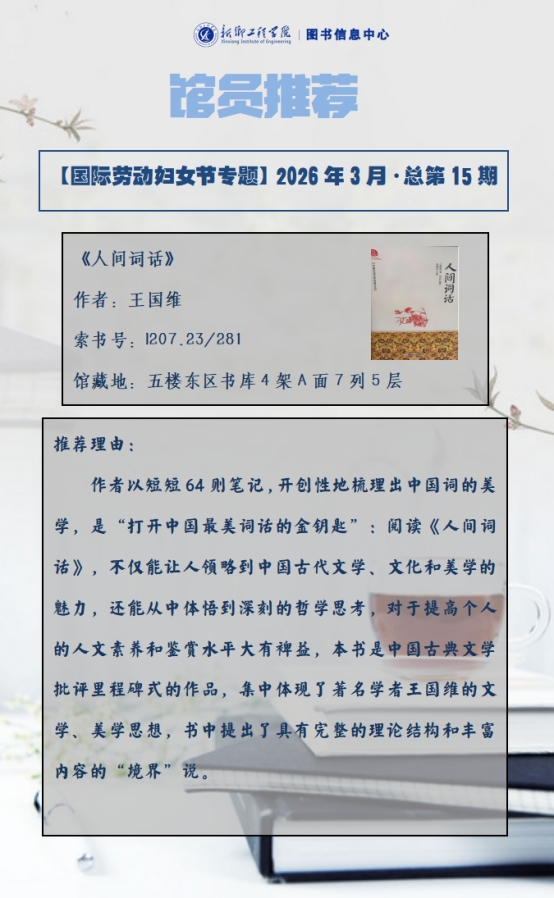 人间三月,芳菲始盛;春风送暖,她耀春光。在“3·8国际劳动妇女节”来临之际,我们以阅读为礼,致敬每一位闪闪发光的女性。从民族史诗里的鲜活生命力,到时代才女的风骨才情,从烟火亲情里的温暖相守,到世事浮沉中的自渡智慧,愿这些藏在书页里的力量与美好,能陪伴每一位女性,在文字中看见更多可能,在阅读中丰盈内心、坚定前行。