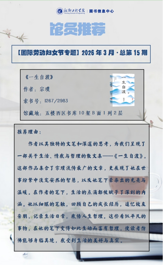 墨香润心,书香致远。每一次阅读,都是一场与自我、与世界的对话,愿这份书单能成为春日里的一抹光亮,让女性在文字中汲取成长的力量,在书页间遇见更好的自己。愿每一位女性,都能怀揣热爱,心有光芒,活成自己喜欢的模样,永远美丽,永远自由。祝福所有女性节日快乐,日日明媚,岁岁安澜!