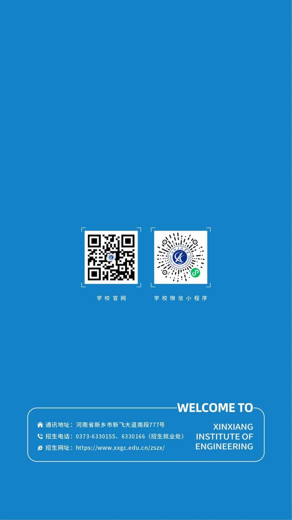 学校地址:河南省新乡市新飞大道南段777号 新乡工程学院 联系电话:0373-6330155
